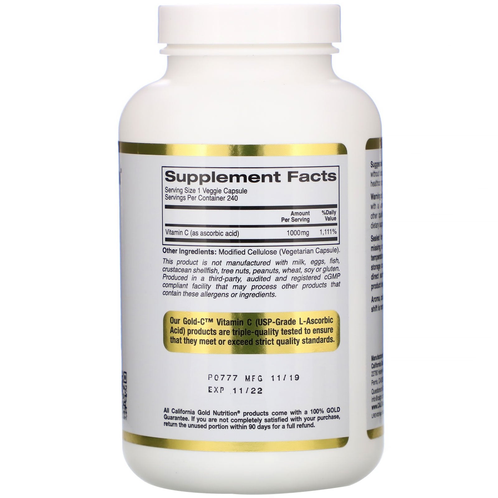 California Gold Nutrition, Gold C, Vitamin C, 1,000 mg, 240 Veggie Capsules